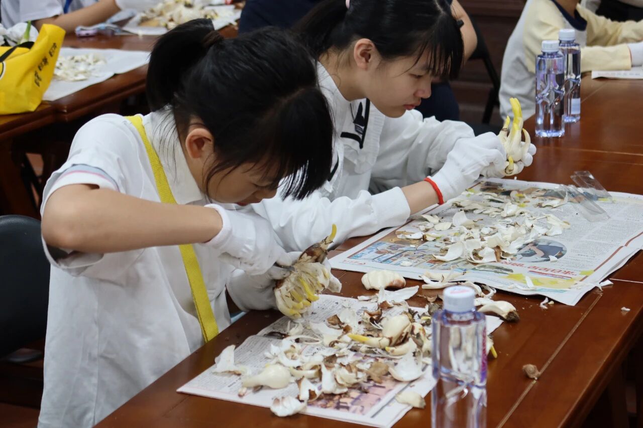 随后,由水仙花雕刻省级非遗传承人现场介绍并展示水仙花雕刻技艺。在老师的指导下,漳台两地小朋友纷纷拿起刻刀,神情专注地投入到水仙花雕刻中,一个个水仙花球在小朋友的雕刻下轮廓逐渐清晰。通过体验雕刻水仙花,不仅让孩子在动手体验中理解‘坚韧守护’的文化内涵,还感受到同根同源的闽南文化。