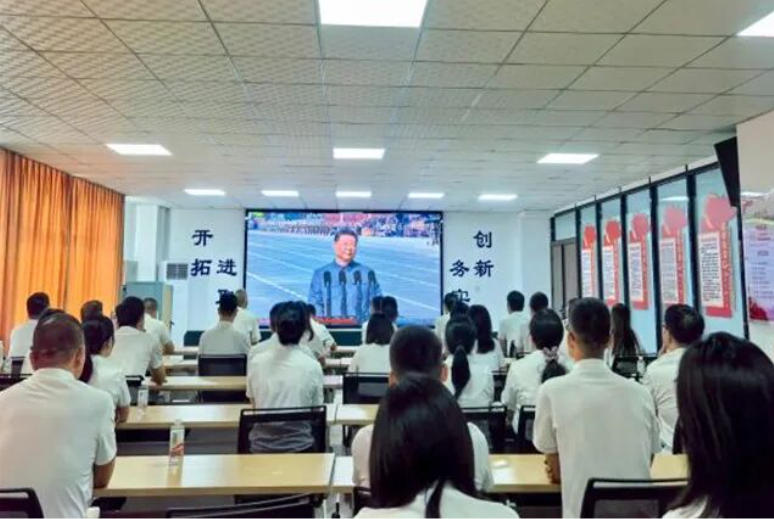 观礼忆峥嵘 共筑强国魂。9月3日上午9点,高鑫发展公司党总支组织全体党员、干部职工通过电视、网络等多种方式观看阅兵直播盛况,与全国人民一道纪念中国人民抗日战争暨世界反法西斯战争胜利80周年。这是对抗战英雄们的深情缅怀、致敬,是一次中国国防现代化建设辉煌成就的展现。从烽火连天的抗战岁月到科技引领的强军新征程,80载砥砺前行,铸就今日荣光新篇章。