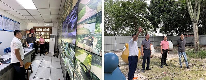 在南山文化生态园,检查组查看并了解园区监控室值班值守情况及节日期间的安保巡逻安排。