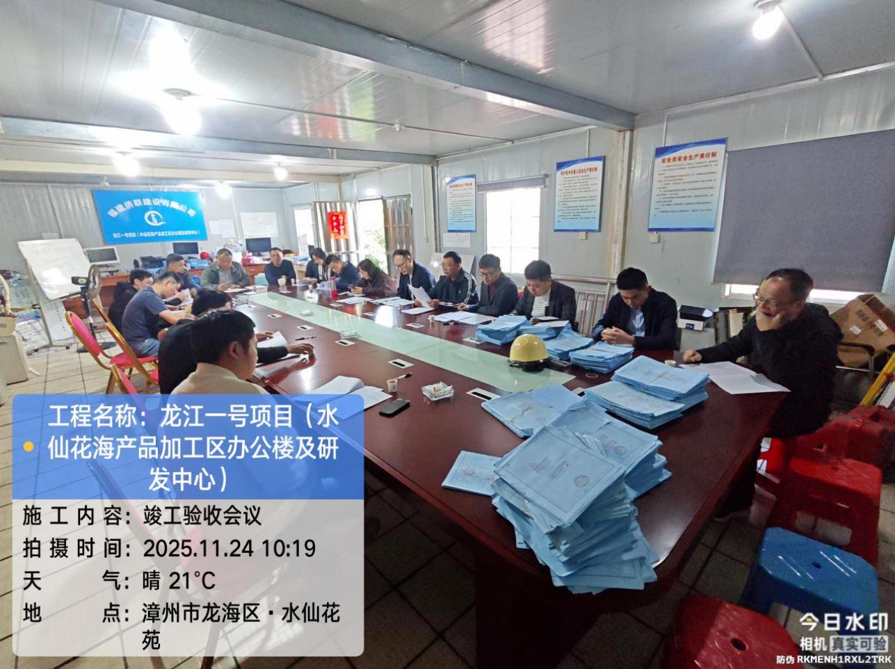 2025年11月24日上午, 由漳州高新区圆创商业运营管理有限公司担任业主的龙江一号项目(水仙花海产品加工区办公楼及研发中心)(以下简称“龙江一号项目”)顺利通过竣工验收,标志着项目建设圆满收官,正式迈入建成投用新阶段。