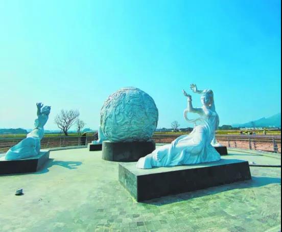 四仙女雕塑已经落成,目前正在进行广场木栈道等基础设施的安装。