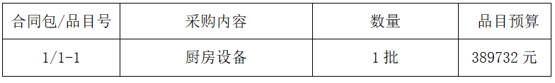 一、项目基本情况 项目编号(或招标编号、政府采购计划编号、采购计划备案文号等,如有):中昕国际ZZ[2021]077号 项目名称:漳州高新区二中综合楼厨房设备采购项目 预算金额:389732元 最高限价(如有):389732元 采购需求: