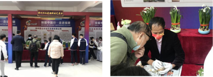 福建省人力资源和社会保障厅副厅长洪长春、漳州市人民政府副市长林少金一行来到展位前,认真观看水仙花雕刻,并表示要保护和传承好水仙花雕刻技艺,让水仙花产业更具价值!