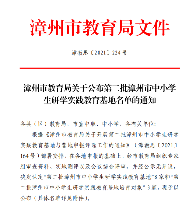 11月10日,圆山发展公司下属高新教育集团公司申报的水仙花海研学基地,成功入选“第二批漳州市中小学生研学实践教育基地”。